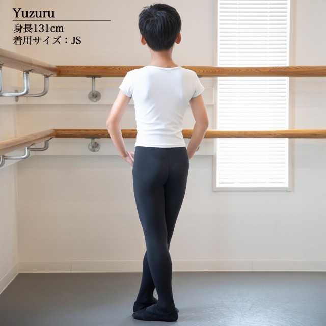 バレエ男子を美しく見せるためのバレエ専用フータータイツ!ボーイズ、ジュニアのお子様向け。舞台に最適。●足のラインがよく見える!足を長く美しく見せるショート丈。●下着のラインが透けにくい生地。程よい厚みでしっかりフィットして動きやすい。●伸縮性大のサポート力のある生地です。またお肌の弱いお子様でも着心地良く、肌ざわりが良いと大好評です。●筋肉の動きや脚の動かし方がはっきりと見えるので、バレエ教室の先生に見てもらいやすい!●サヨリは、お洗濯に強い丈夫な国産生地・丁寧な縫製です。●カラー展開/ブラック、チャコールグレー●サイズ展開/JS、JM、JL、大人S、大人M