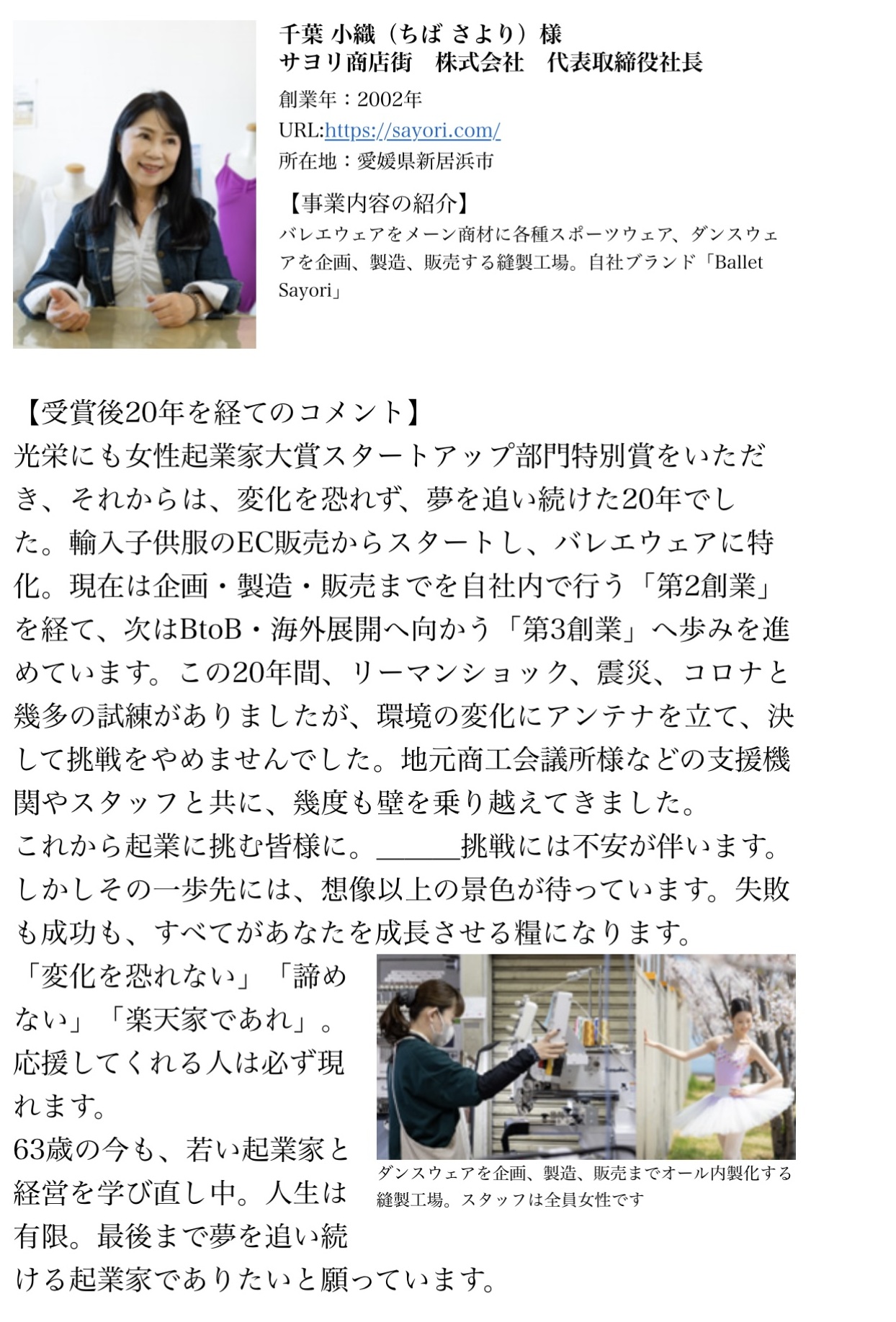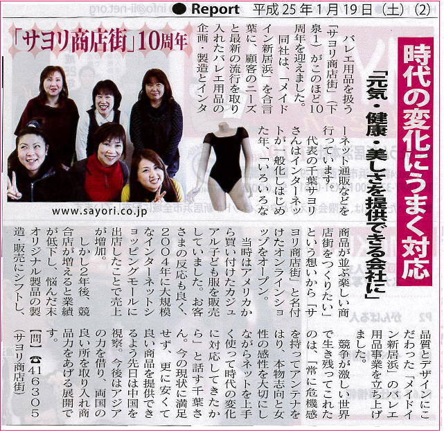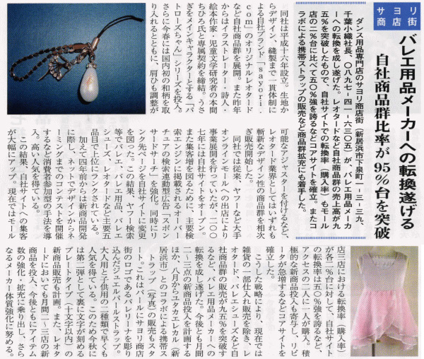 >>2019年7月29日号 [バレエ衣装のEC企業、サヨリ商店街 自社の縫製工場が軌道に]