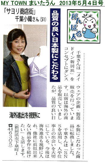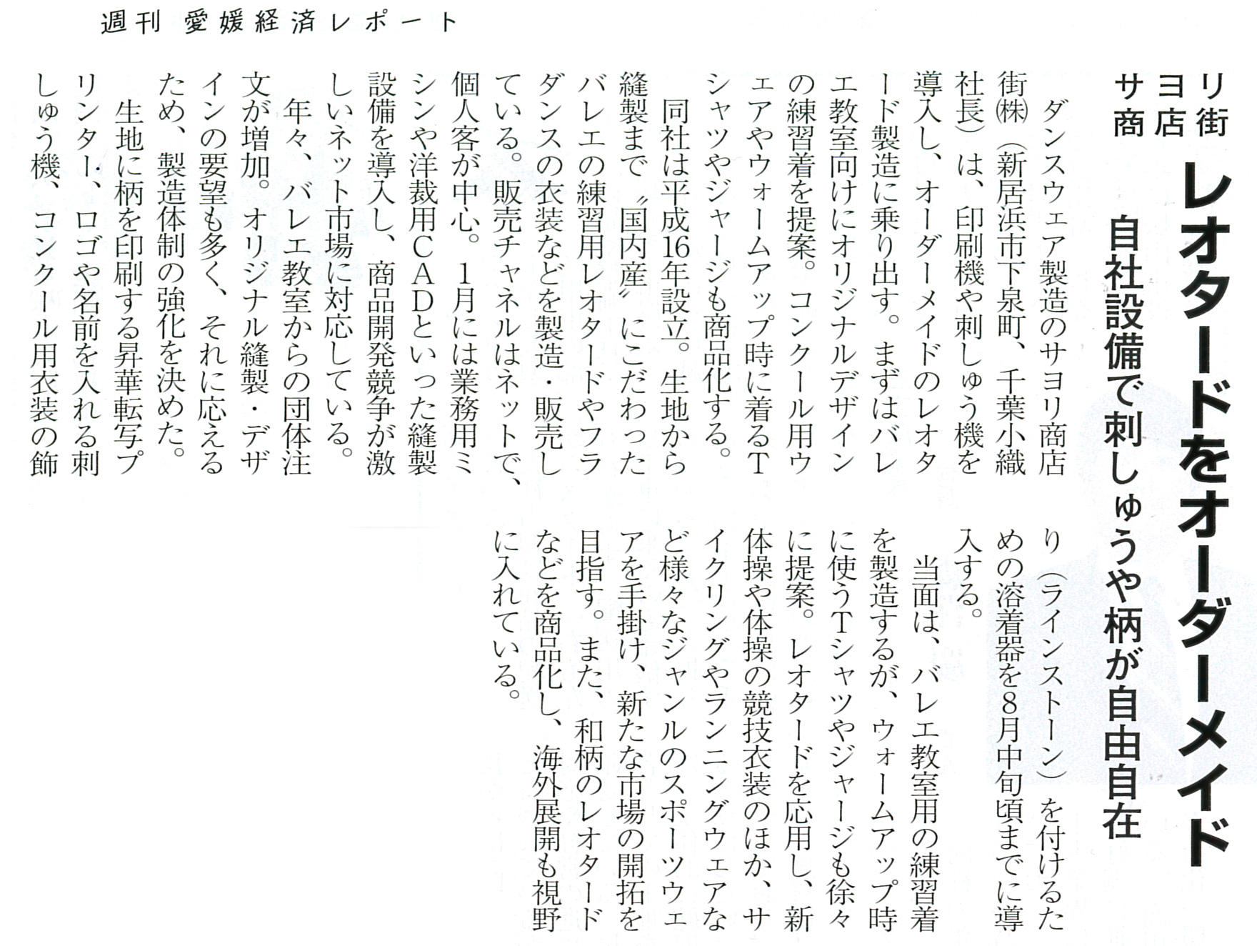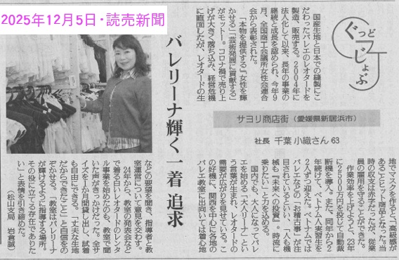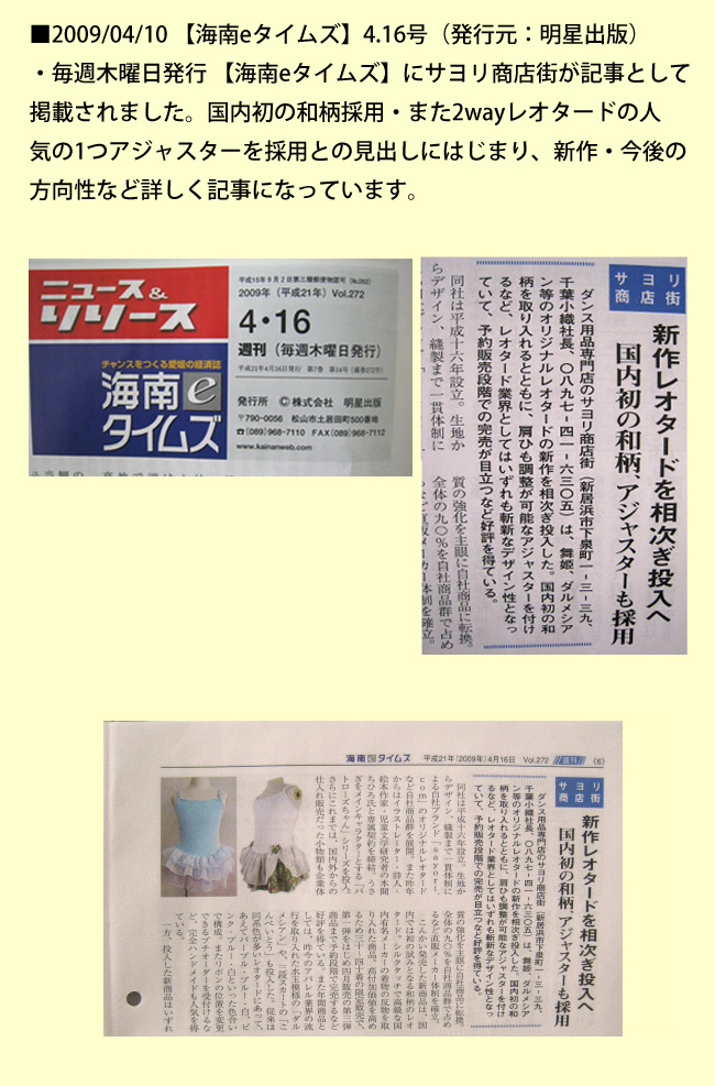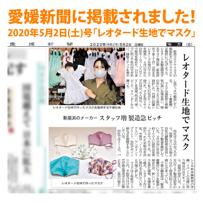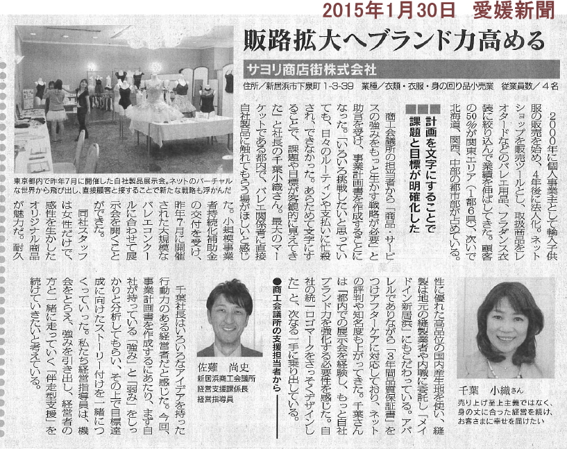 >>リボンパッセレオタードが【新居浜の逸品】に認定されました(新居浜商工会議所・会報「niihama」2月号に紹介記事が掲載)