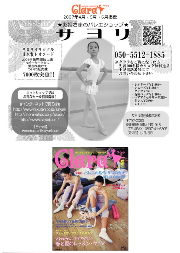 >>バレエ雑誌クララに当店の商品が紹介されました