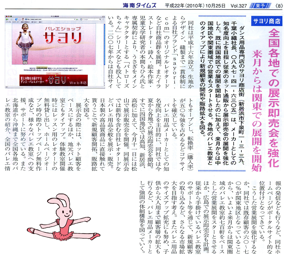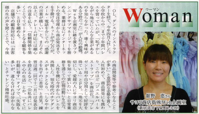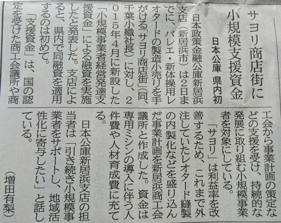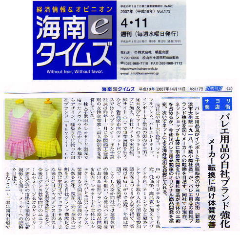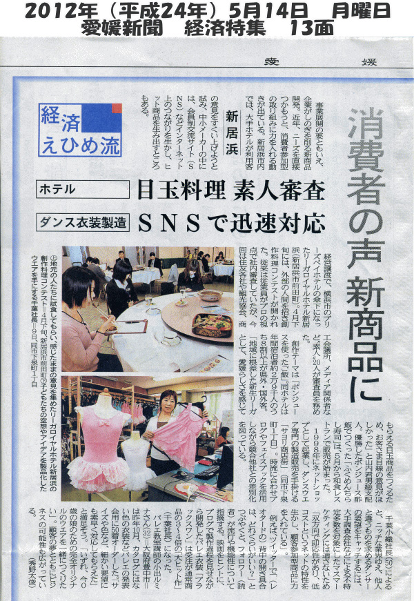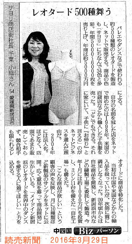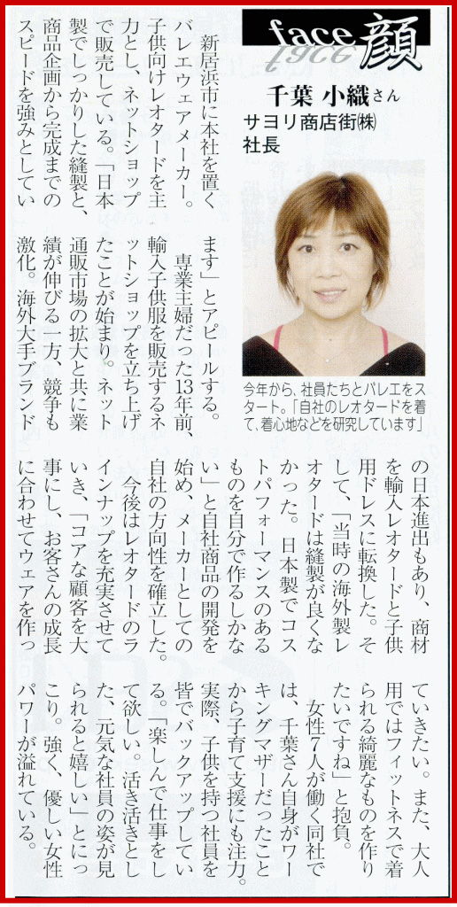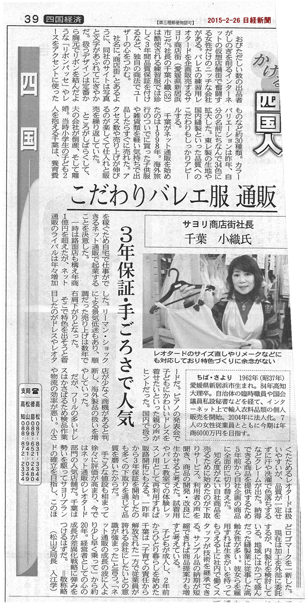 >>日経新聞・四国経済面・特集「かける四国人」こだわりバレエ服通販〜記事掲載