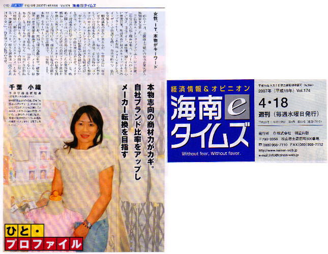 >>【愛媛新聞・社会欄・5面・特集記事《変わる》】に記事が掲載されました