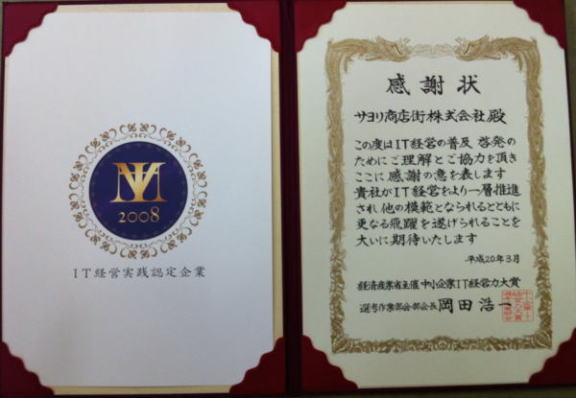 >>経済産業省・中小企業IT経営大賞・感謝状