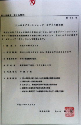 >>新居浜グリーンショップ・オフィスに認定されました