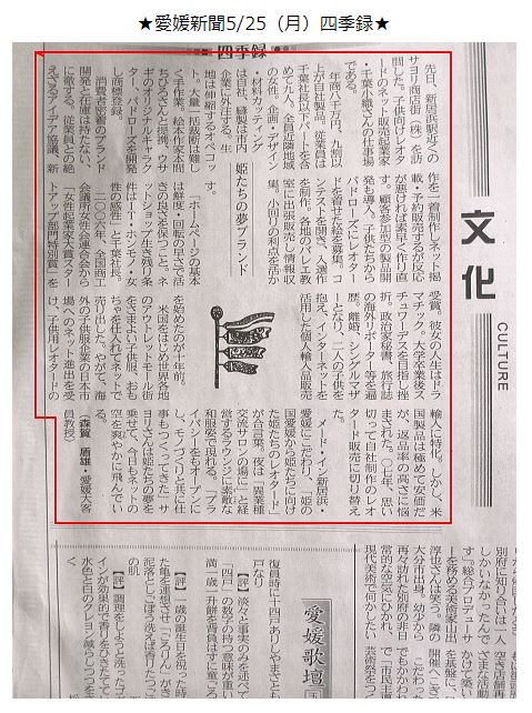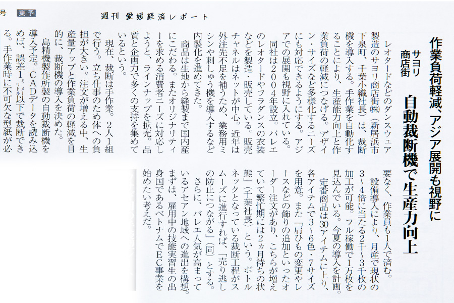 >>【愛媛経済レポート 2016年7月18日 第2017号】自社の縫製工房の詳細が掲載されました