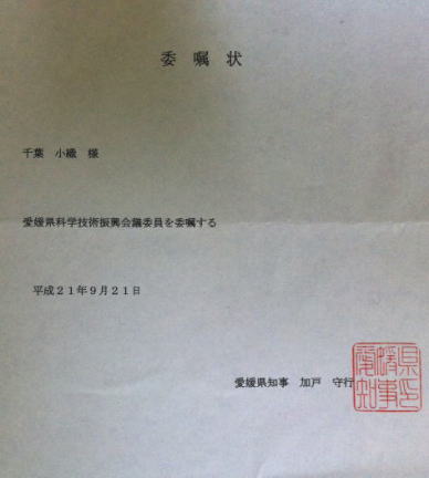 >>愛媛県科学技術振興会議委員・委嘱される(代表・千葉小織)