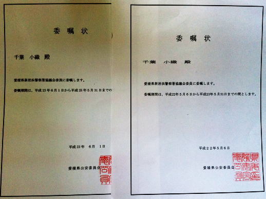>>愛媛県新居浜警察署協議会委員・委嘱(代表・千葉小織)