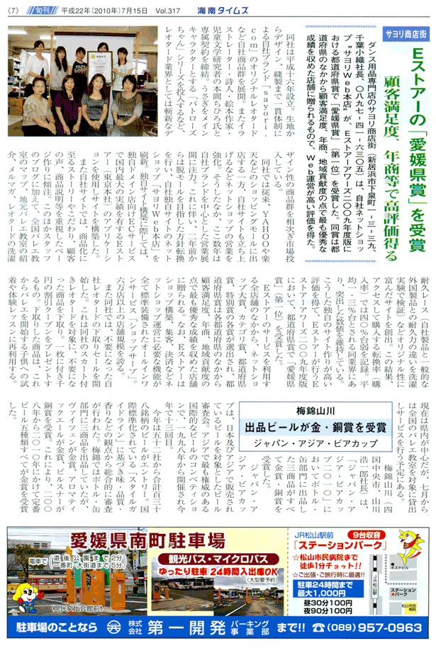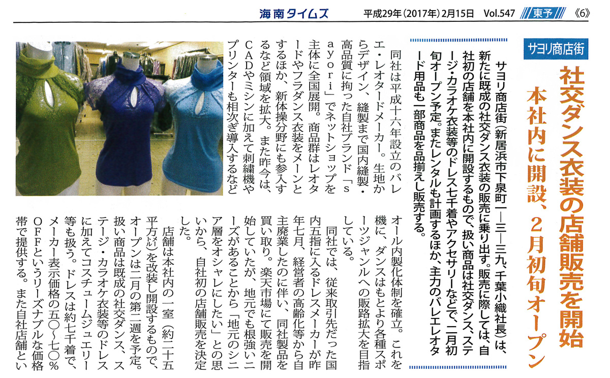 >>海南タイムズ 2017年2月15日号 [社交ダンス衣装の店舗販売開始] 記事が掲載されました