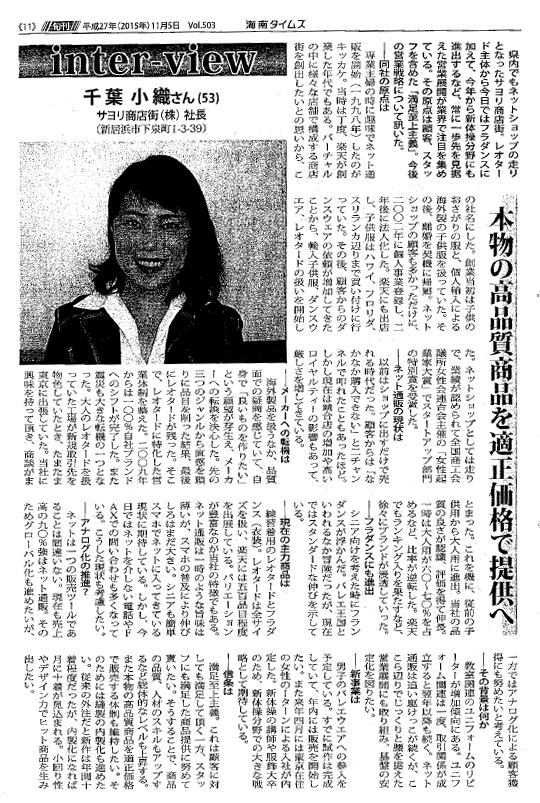 >>海南タイムズ 2015年11月5日号 経営者インタビュー