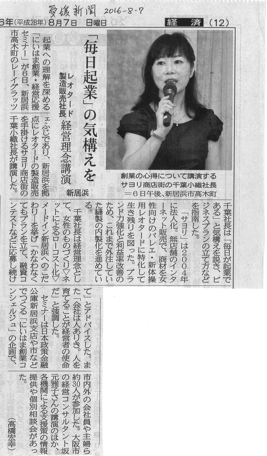 >>【愛媛新聞】2016年8月7日・経済面に記事が掲載されました(にいはま創業・経営応援セミナーの模様)
