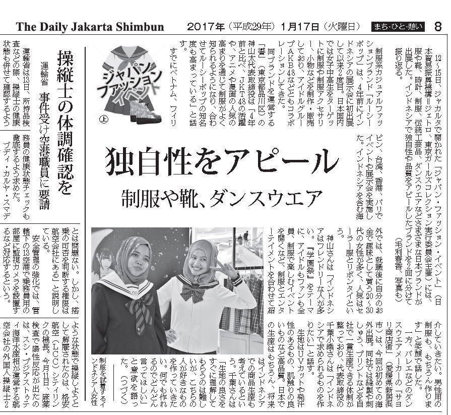 >>ジャカルタ新聞2017年1月17日号[ジャパンファッションイベント]記事が掲載されました