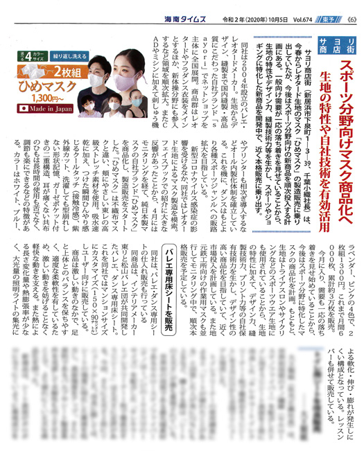 >>2020年10月5日号 [スポーツ分野向けマスク商品化へ]